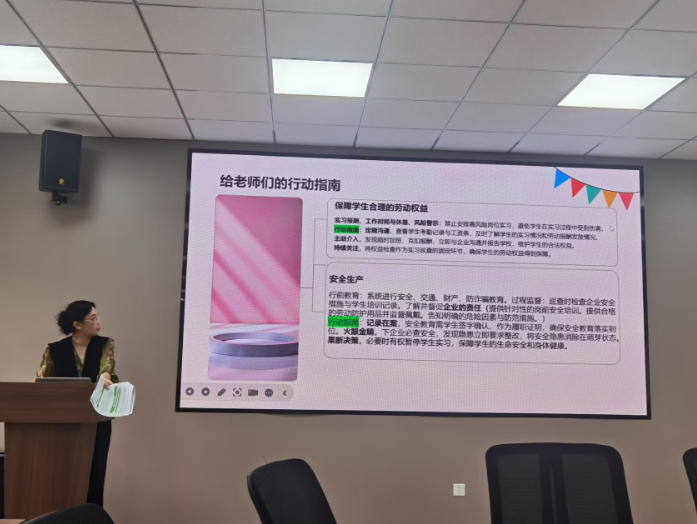 王瑞斌律师凭借自身专业的法律功底和丰富的实践经验,通过一个个真实鲜活的案例,详细讲解了实习生在实习过程中可能遇到的各类法律问题及应对策略。她指出,学校、实习单位和学生三方都应明确自身的权利和义务,学校要加强对学生的法律教育和实习指导,实习单位要为学生提供安全的工作环境和必要的劳动保护,学生自身也要增强法律意识和自我保护能力。