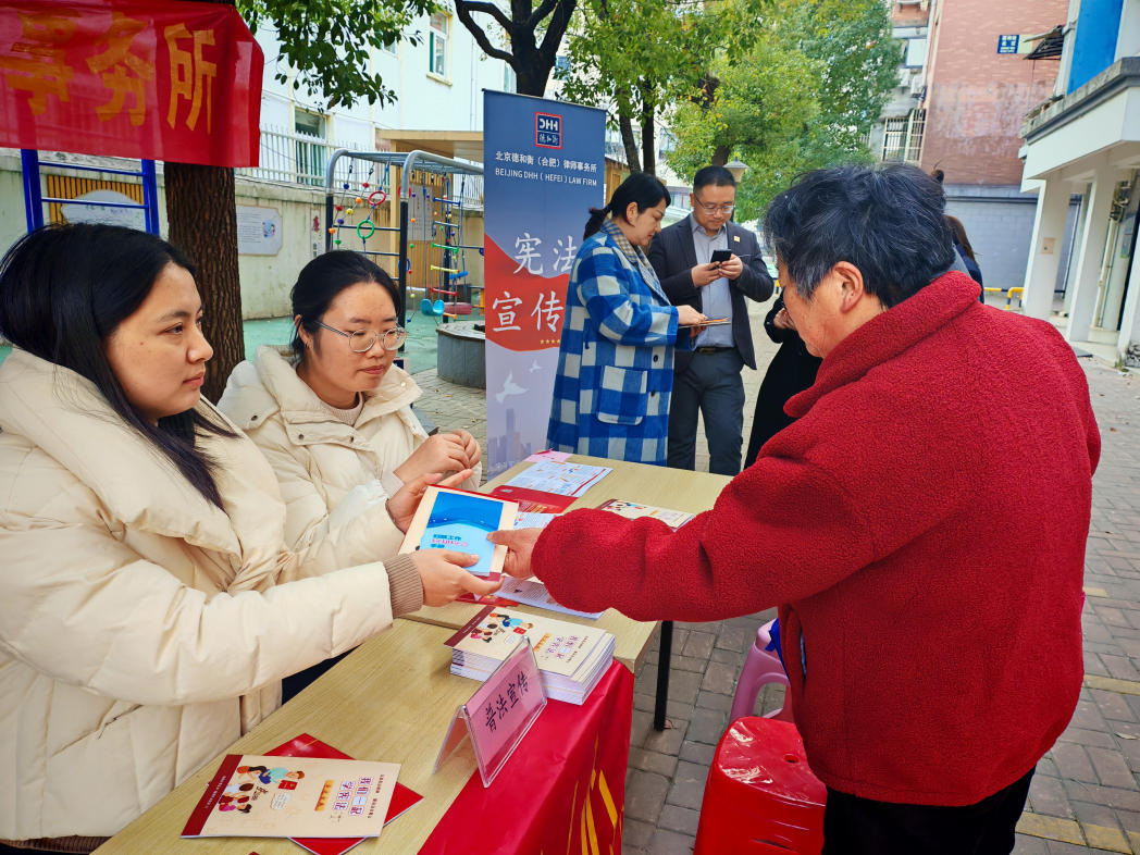 12月4日,正值国家宪法宣传日之际,为弘扬宪法精神,增强社区居民法治观念,北京金台(合肥)律师事务所组织律师团队,深入合肥市荷叶地街道嘉和苑小区,成功举办了一场面向基层群众的宪法宣传公益活动。本次活动由事务所杜铭律师、唐云鹏律师牵头组织,陈书琴、李明霞、汪叶玲等多位律师、实习律师共同参与宣讲。
